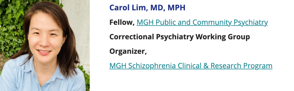 We are excited to share about an important partnership that has been formed between the MGH COE and FFIMI. They reached out to us to learn about our lived experience and understand our concerns. The result was the formation of The Correctional Psychiatry Working Group. Carol Lim, MD of MGH and FFIMI’s Donna Winant partnered on an article for their summer newsletter, the theme of which is mental illness and criminal justice involvement.